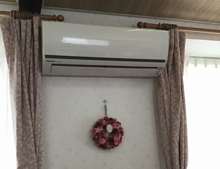 リビングでお使いのエアコンを新しいものへ交換しました。