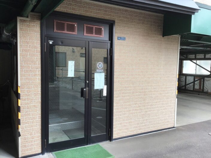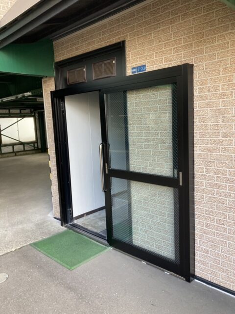 マンション共用部のフロントドアを、開閉しやすく防犯性にも配慮した引き戸タイプへ交換いたしました。既存ドア枠を撤去し、新たにアルミ製の引き戸枠を設置。ガラスには視認性と安全性に優れた網入りガラスを採用し、住まう方や訪れる方が安心して利用できるエントランスへリニューアルしています。引き戸にすることで省スペース化が図れ、スムーズな導線を確保することができました。