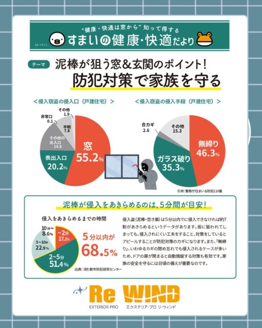 侵入窃盗は「窓」や「玄関」からが大半。